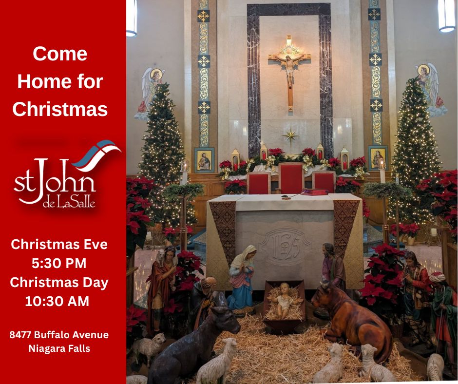 Christmas Masses at St. John’s will be at 5:30 PM on Christmas Eve and 10:30 AM on Christmas Day.